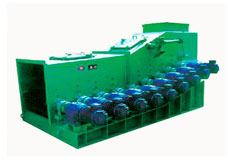 斜面滾動(dòng)篩是由套在按一定軌跡布置的數(shù)根并列軸上的一定數(shù)量的異形篩片,作同向等速旋轉(zhuǎn),形成一個(gè)滾動(dòng)的“香蕉”形的篩面,物料在這種篩面******動(dòng)時(shí),可形成等厚的且具有一定加速度料流,大塊物料在旋轉(zhuǎn)篩片的作用下逐漸向前運(yùn)動(dòng),進(jìn)入破碎設(shè)備,小塊物料透過(guò)篩孔進(jìn)入皮帶輸送機(jī),從而完成篩分目的。