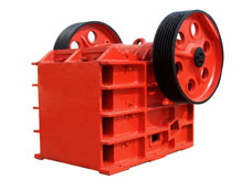 本機主要由機架、動顎、偏心軸、齒板、肘板及調整裝置等零部件組成。工作原理是由電動機通過三角皮帶傳動偏心軸,使動顎按照已調好的軌跡進行運動,從而將破碎腔內物料予以破碎。
